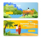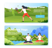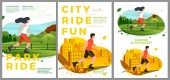 Wektor banery z toczenia człowiek i dziewczyna na rowerze