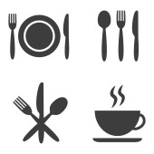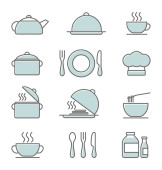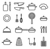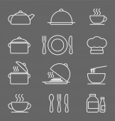Zestaw ikon kuchni, czarno-białe ikony wektorowe w stylu cienkiej linii.