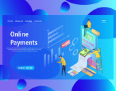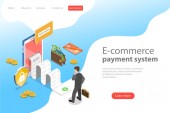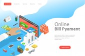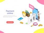 Izometryczny płaski wektor strony docelowej szablon płatności online.