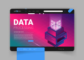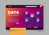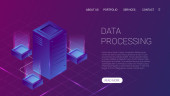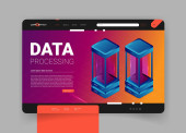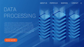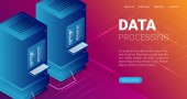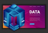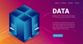Koncepcja przetwarzania dużych zbiorów danych, stacja energetyczna przyszłości, stojak serwerowni, ilustracja wektora izometrycznego centrum danych