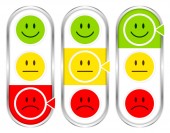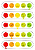 Zestaw pięciu pionowy barometr z twarzami pokazując nastrój kolor i srebro