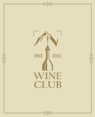 Wine Club logo. Logo wina i Sea Waves godło. Sklep z winem lub logo restauracji, winogrona i fale na niebieskiej naklejce.