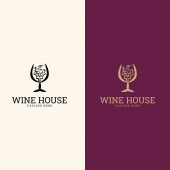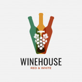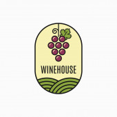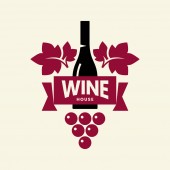 Wine House logo. Koncepcja logo wina. Wino sklep lub restauracja logo, winogrona i curl izolowane, na różnych środowisk.