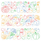 Zdjęcie "Zdrowe jedzenie i gotowanie. Owoce, warzywa, gospodarstwa domowego. Doodle wektor zestaw." może być wykorzystywane do celów osobistych i komercyjnych zgodnie z warunkami zakupionej licencji Royalty-free. Obraz jest dostępny do pobrania w jakości wysokiej rozdzielczości do 5760x3840.