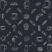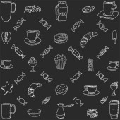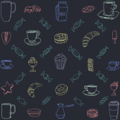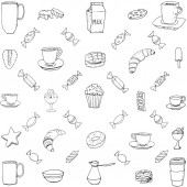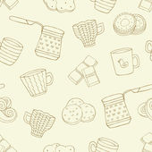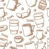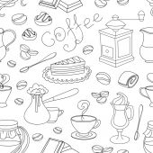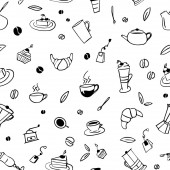 Ręcznie rysowane wektor Doodle kawy bezszwowe wzór. Przydatne do pakowania, projektowania menu i dekoracji wnętrz. Ilustracja na białym tle. Pyszne. Wylosowana filiżanka kawy. Herbaty.