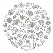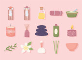 Aromaterapia i spa znaki cienka linia okrągły szablon projektu. Wektor