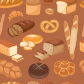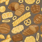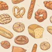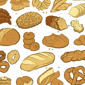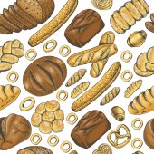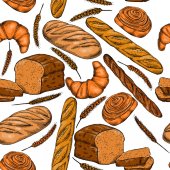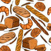 Chleb bez szwu wzór. Rysowanie wektorowe. Produkt piekarniczy kolorowy szkic tła. Rocznika ilustracja żywności dla bakeshop, piekarnia piekarnika etykiety, menu lub projektowania opakowań.