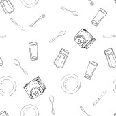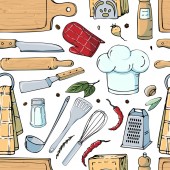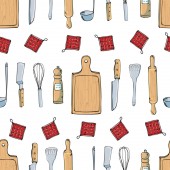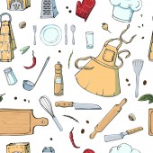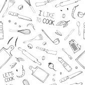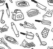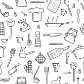 Ręcznie rysowane bezszwowe wzór z naczynia kuchenne. Original Doodl