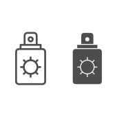 Wektor owadów spray, ikona linii dezynfekcji błędów.