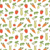 Bezszwowy wzór z ręcznie rysowanych warzyw tle. Organiczne zioła i przyprawy. Ilustracja jedzenie rysunki wektor wzór zdrowy.
