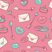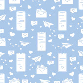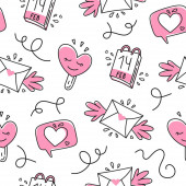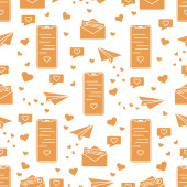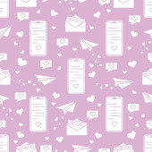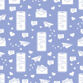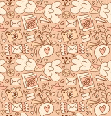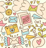 wzór poczty bez szwu. poście dekoracyjny tła z listów, aparat fotograficzny, owoce i inne słodkie elementy