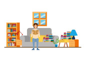 Zdjęcie "Kobieta w salonie z biurkiem i książkami" może być wykorzystywane do celów osobistych i komercyjnych zgodnie z warunkami zakupionej licencji Royalty-free. Obraz jest dostępny do pobrania w jakości wysokiej rozdzielczości do 5760x3840.