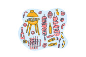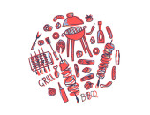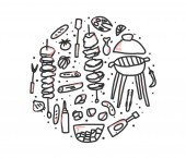 Emblemat Barbecue z tekstem. Projektowanie wektorowe na białym tle.