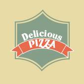 Sos do pizzy retro metalowy znak z plasterkiem pomidorowym i przyprawami ziołowymi. Projektowanie etykiet składników pizzy. Obraz wektorowy.