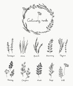 Zestaw uszu. Owale, pszenica, jęczmień, proso, Rue i ryż .
