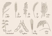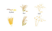Zestaw uszu. Owat, pszenica, jęczmień, proso, Rue i ryż. Karta kolorów