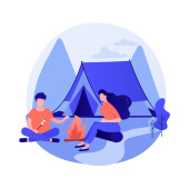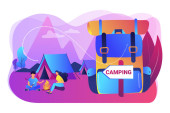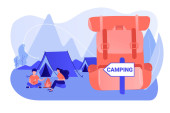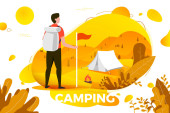 Wektor Camping człowiek z plecaka patrząc na namiot