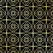 Art Deco wzór. Bezszwowe złote tło. Minimalistyczne wzornictwo geometryczne. Wektor wzór linii. 1920-30s motywy. Vintage ilustracja luksus