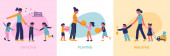 Zdjęcie "Kolekcja rodzinnych hobby i zajęć. Matka, ojciec i dzieci bawią się z kotami, zbierają śmieci do recyklingu, przylegając do domu, relaksując się z gadżety w domu. Kreskówka wektor" może być wykorzystywane do celów osobistych i komercyjnych zgodnie z warunkami zakupionej licencji Royalty-free. Obraz jest dostępny do pobrania w jakości wysokiej rozdzielczości do 5760x3840.