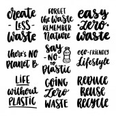 Ekologia motywacja Typografia cytaty zestaw. Uratować planetę, powiedzmy nie do tworzyw sztucznych, koncepcja zero odpadów. Napis środowiskowy tekst plakatu. Wektor EPS 10.