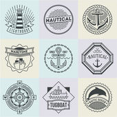 Sea Marine morskie ikony logo żeglarstwo tematyce etykieta lub ze wstążkami statek podróż element graficzny odznaka.