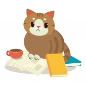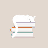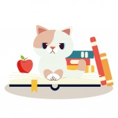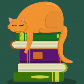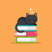 Cute charakter kota spanie na stos książki. spanie kota. stos książki. leniwy kot śpi. sleeing na książce. badania przez moje ja. Edukacja cat.so zmęczony