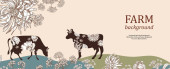 Poziome sztandar rolniczy. Mleko może i kwiaty łąki. Szablon dla gospodarstw mleczarskich.