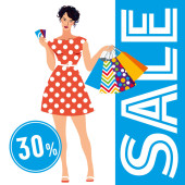 Sprzedaż w sklepie. Różne torby na czerwonym tle. Grafika wektorowa w pełnym kolorze