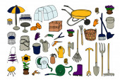 Zdjęcie "Ręcznie rysowane Narzędzia ogrodowe & zestaw mebli, Doodle" może być wykorzystywane do celów osobistych i komercyjnych zgodnie z warunkami zakupionej licencji Royalty-free. Obraz jest dostępny do pobrania w jakości wysokiej rozdzielczości do 5760x3840.
