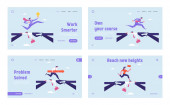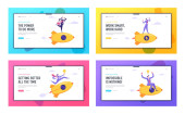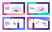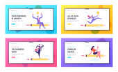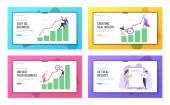 Statystyki zysku finansowego diagram Strona docelowa zestaw stron, pewni biznesowi w Red Super Hero Cloak Stand na szczycie uprawy wykresu. Strony sieci Web lidera. Kreskówka płaski wektor ilustracja, banner