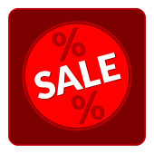 Czerwony tekst sprzedaży i procent banner. Czerwona ikona, tekstura i tło wektorowe w formacie kwadratowym.