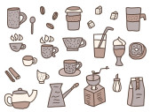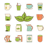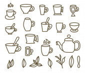 Zestaw do herbaty. Kubki i czajniki. Ilustracja wektorowa.