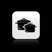 Czarna ikona garnka gotowanie na białym tle. Gotować lub gulasz symbol żywności. Ustaw ikonę w kolorowych kwadratowych przyciskach. Ilustracja wektorowa