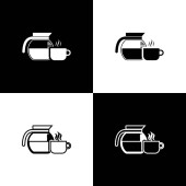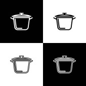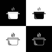 Ustaw ikonę gotowania pot izolowane na czarno-białym tle. Gotować lub gulasz symbol żywności. Ilustracja wektorowa