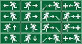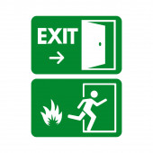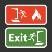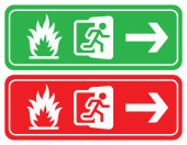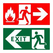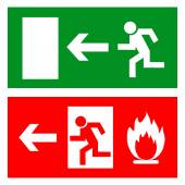 znak zielony wyjść awaryjnych, ikona i symbol - ogień