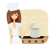 Piękna pani gotuje zupę