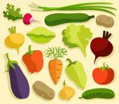 wektor ładny kolorowy ikony: owoce, warzywa, żywność