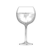 Ręcznie rysowane pusty szkic kieliszek do wina. Styl grawerowania.