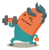 retro kreskówka mężczyzna wysiłku do podnoszenia ciężarów