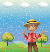 stary człowiek w pobliżu puste tablice informacyjne z dwie wiewiórki