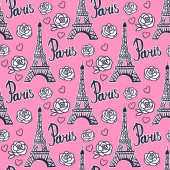 Zestaw Buldog francuski. Wieża Eiffla i słodkie twarze psa. Wektor ręcznie rysowane naklejki.