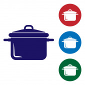 Niebieski gotowanie ikona puli na białym tle. Gotować lub gulasz symbol żywności. Ustaw kolor ikony w przyciski okręgu. Ilustracja wektorowa
