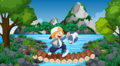 Zdjęcie "chłopiec działa nad rzeką mostu" może być wykorzystywane do celów osobistych i komercyjnych zgodnie z warunkami zakupionej licencji Royalty-free. Obraz jest dostępny do pobrania w jakości wysokiej rozdzielczości do 5760x3840.