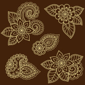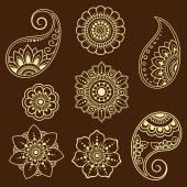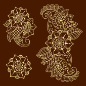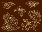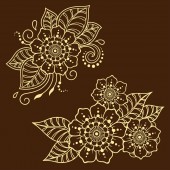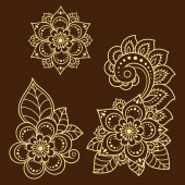 Zestaw wzorów kwiatów Mehndi do rysowania i tatuażu Henny. Dekoracja w etnicznym orientalnym, indyjskim stylu. Ozdoba bazgrołów. Ilustracja wektora rysunku.