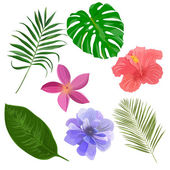 Tropikalne kwiaty i liście kolekcja wektor izolowane