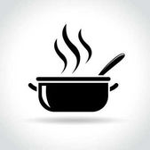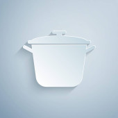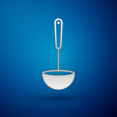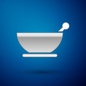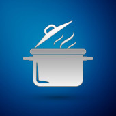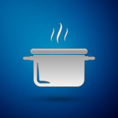 Srebrna ikona garnka gotowanie na niebieskim tle. Gotować lub gulasz symbol żywności. Ilustracja wektorowa
