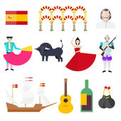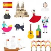 Zestaw szablonów ze słynnymi symbolami Hiszpanii. Ilustracja wektorowa w stylu płaskim.