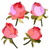 Dwa rozety witn liści izolowane w białym tle. Ilustracja wektorowa kwitnących kwiatów.