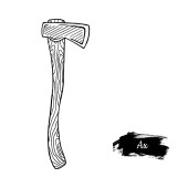 Zabytkowe nowoczesne monochromatyczne czarne topór. Element projektu na białym tle. Ilustracja wektorowa.