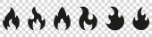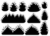 Zestaw sylwetka ognisty płomień ikona w kreskówek i płaski styl. Obiekt izolowany w różnych formach.